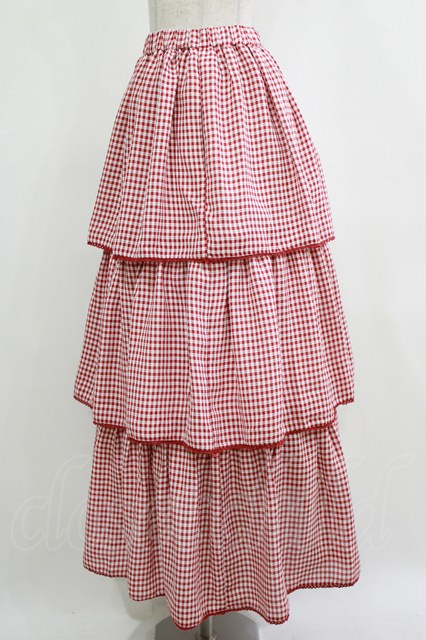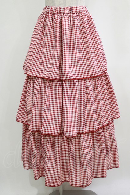 merry jenny / ギンガムティアードスカート レッド H-26-01-19-012-LO-SK-KB-ZH [2100030000083379-H-26-01-19-012-LO-SK-KB-ZH]