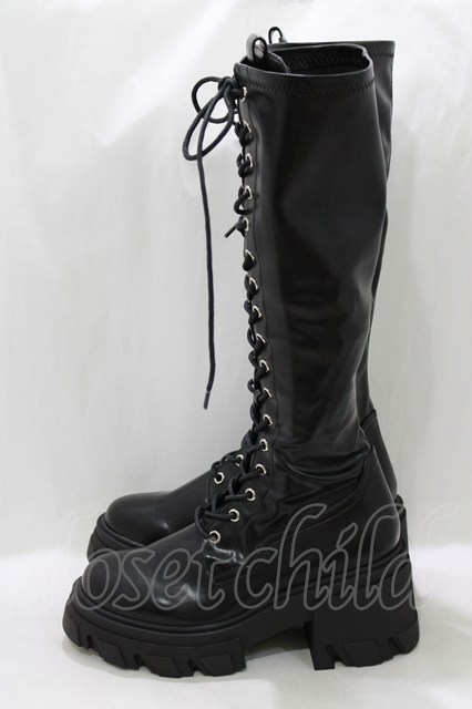 jouetie / ストレッチレースアップロングブーツ L ブラック H-26-01-19-080-EL-SH-KB-ZH