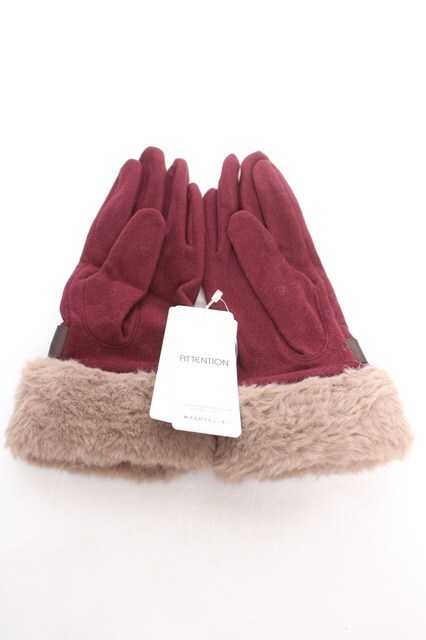 axes femme / ファー×リボン手袋 ワイン Y-26-01-16-004-AX-ZA-SZ-ZY