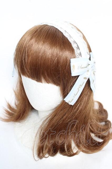 Amavel / サイドロゴリボンレースカチューシャ サックス Y-26-01-16-047-CA-AC-SZ-ZY