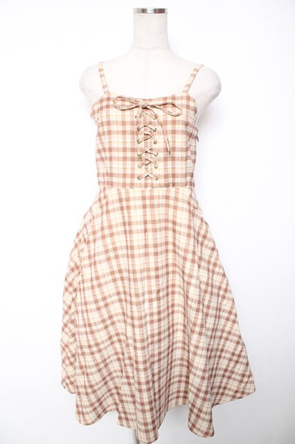 Fi.n.t / フロントレースアップチェックジャンスカ f ベージュ×ブラウン Y-26-01-16-145-CA-OP-SZ-ZY