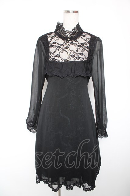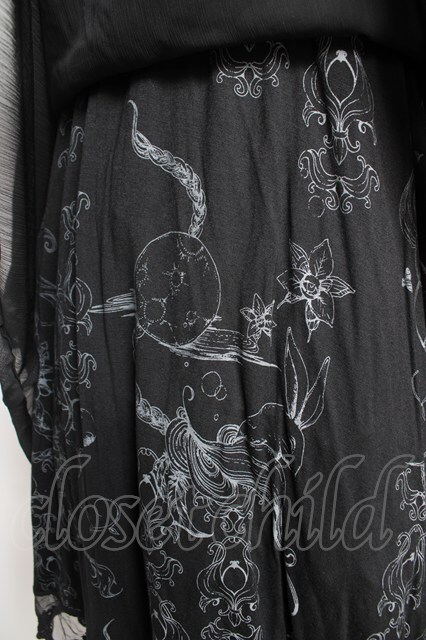 FRILL / シフォン重ねプリントワンピース 黒 Y-26-01-16-155-HN-OP-SZ-ZY