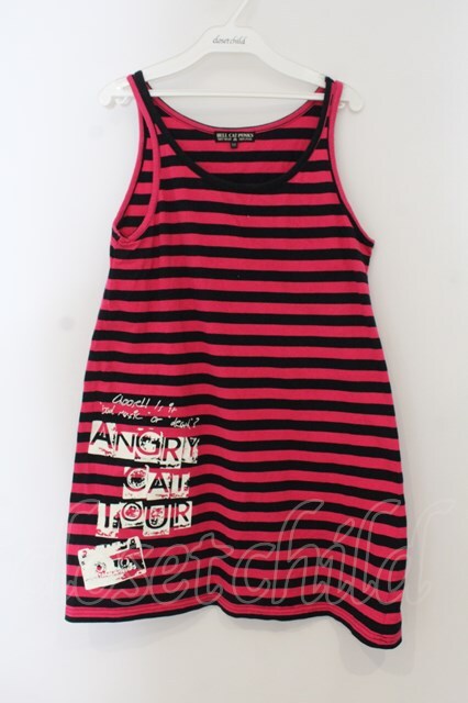 HELL CAT PUNKS / ボーダーロングタンクトップ M ピンクxブラック O-26-01-15-050-PU-TO-YM-OS