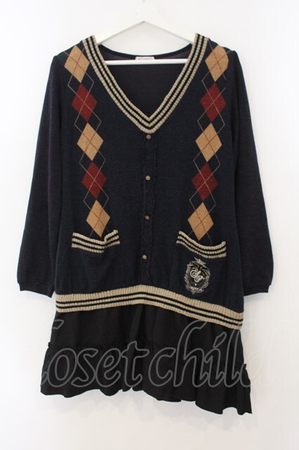 axes femme / アーガイル柄カーデ風ワピース M ネイビー O-26-01-15-067-AX-OP-YM-OS