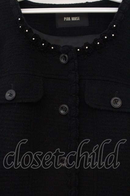 PINK HOUSE / ポケット付きノーカラージャケット クロ O-26-01-15-106-LO-JA-IG-OS