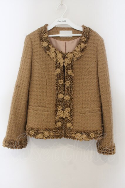 PINK HOUSE / ローズモチーフノーカラージャケット キャメル O-26-01-15-105-LO-JA-IG-OS [2100080000071734-O-26-01-15-105-LO-JA-IG-OS]