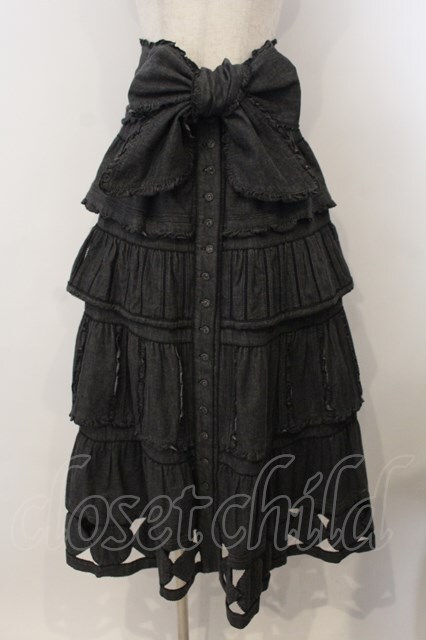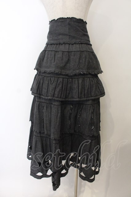 WONDERFUL WORLD / 裾パッチワークデニムティアードスカート クロ系 O-26-01-15-078-LO-SK-IG-OS