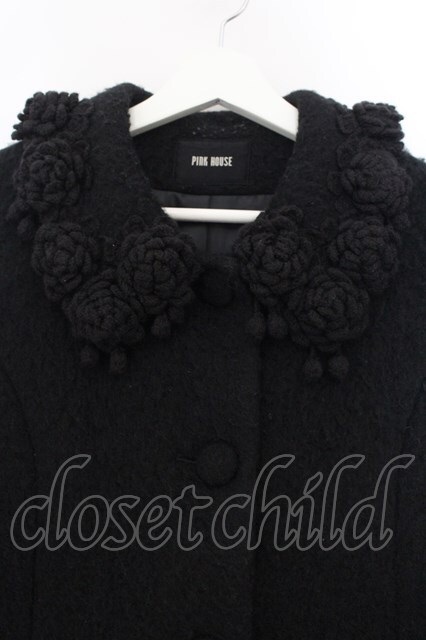 PINK HOUSE / ローズモチーフシャギーコート クロ O-26-01-15-100-LO-CO-IG-OS