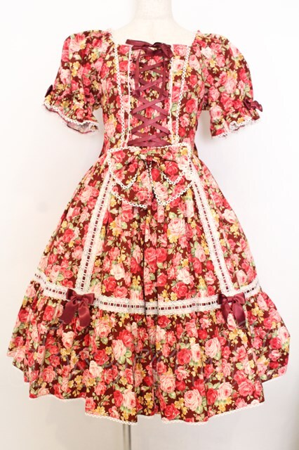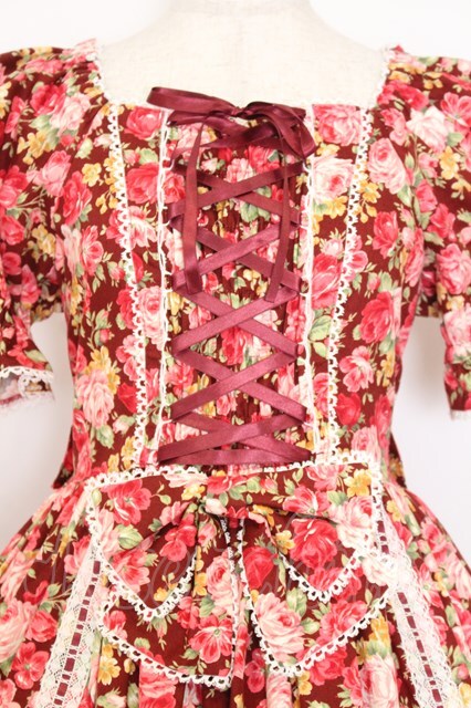 metamorphose / はしごレースリボン花柄半袖ワンピース 1 ボルドー系 O-26-01-15-003-ME-OP-OW-OS [2100080000071760-O-26-01-15-003-ME-OP-OW-OS]