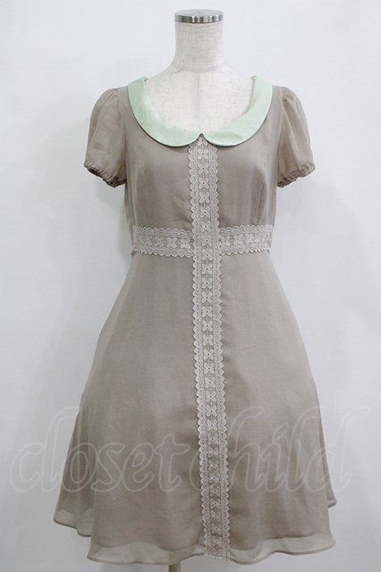 Emily Temple cute / ラウンドカラーフラワーレースワンピース グレー×ミント H-26-01-21-011-ET-OP-KB-ZH