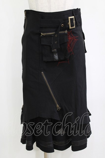 Ozz On / 刺繍オーバー付レイヤードスカート ブラック H-26-01-21-026-OO-SK-KB-ZH [2100030000083889-H-26-01-21-026-OO-SK-KB-ZH]