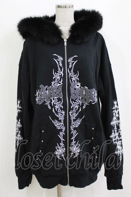 Amilige / ファー付きAmiligeラインストーンパーカー ブラック H-26-01-21-048-PU-TO-KB-ZH