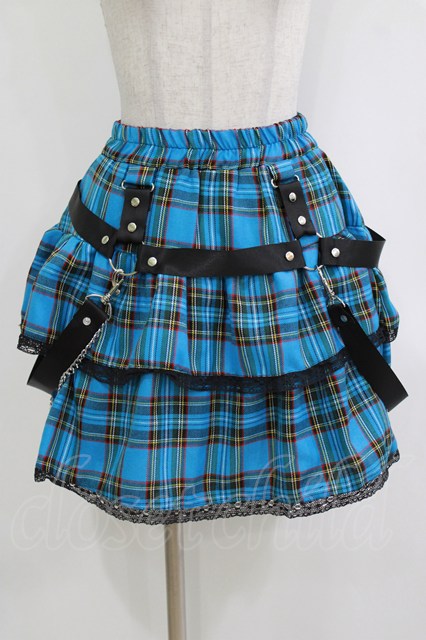 LISTEN FLAVOR / ハーネスティアードスカート ブルーチェック H-26-01-21-020-PU-SK-KB-ZH