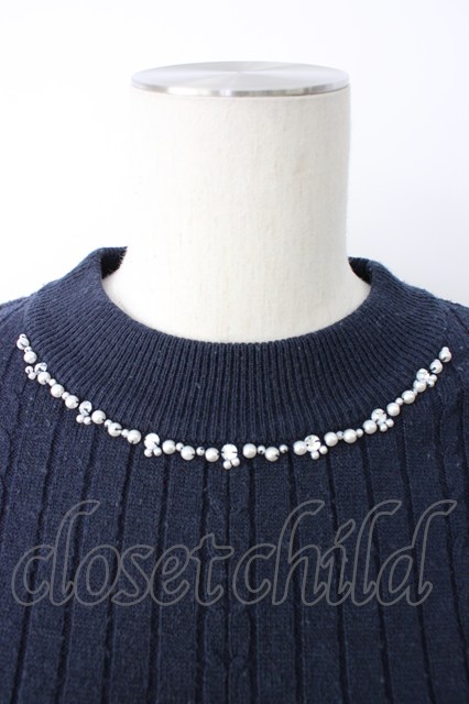 axes femme / ビジューリブニットトップス ネイビー T-26-01-16-004-AX-TO-IG-ZT [2100080000060685-T-26-01-16-004-AX-TO-IG-ZT]