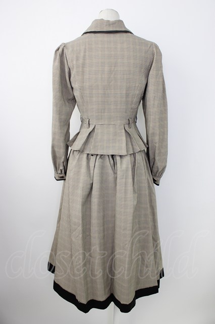 Button BearQueenie / グレンチェックジャケット&スカートセットアップ S ブラウン T-26-01-16-031-EL-OP-SA-ZT