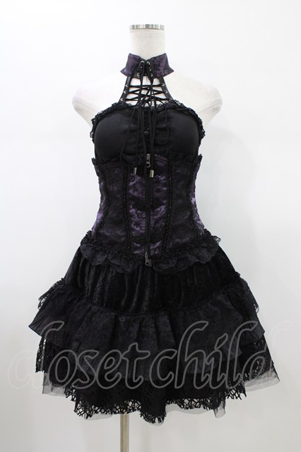 Qutie Frash / ジャガード切替ホルターワンピース 紫 H-26-01-20-1043-QU-OP-KB-ZH