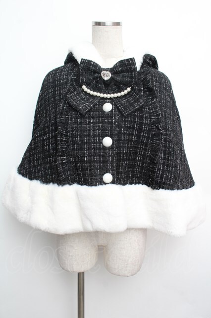Ank Rouge / くまちゃんキラキラツイードポンチョ 黒 S-26-01-15-056-CA-CO-HR-ZS
