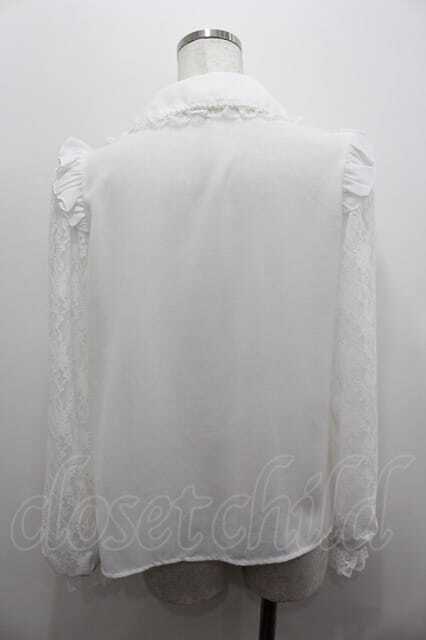Secret Honey / パール襟&レース袖ブラウス 白X黒 I-26-01-15-007-CA-BL-SA-ZI [2100060000049189-I-26-01-15-007-CA-BL-SA-ZI]