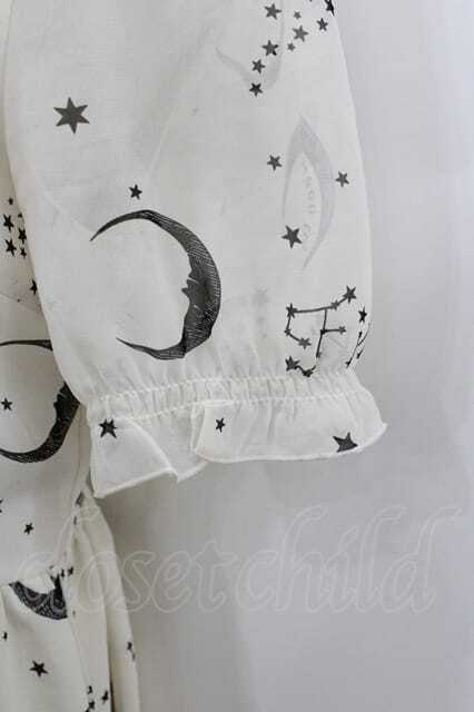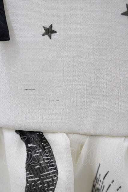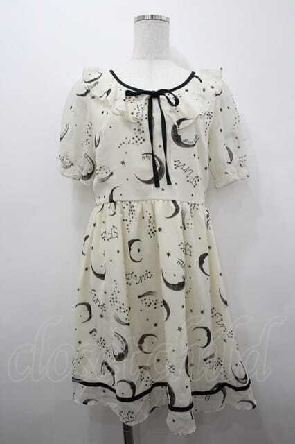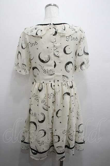 Fi.n.t / MOONプリントシフォン半袖ワンピース アイボリーX黒 I-26-01-15-030-CA-OP-SA-ZI