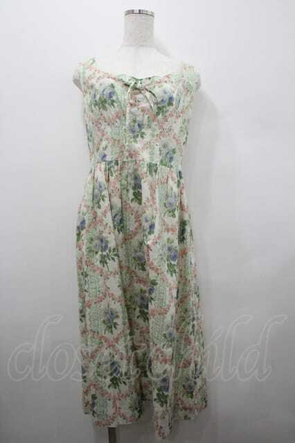 Jane Marple Dans Le Salon / ローズブーケプリントノースリーブワンピース アイボリーXグリーン I-26-01-15-036-JM-OP-SA-ZI