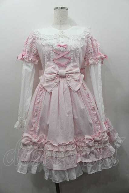 Angelic Pretty / Dolly Girl付け袖ワンピース ピンクX白 I-26-01-15-038-AP-OP-SA-ZI [2100060000049088-I-26-01-15-038-AP-OP-SA-ZI]