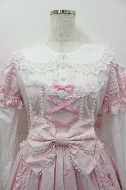 Angelic Pretty / Dolly Girl付け袖ワンピース ピンクX白 I-26-01-15-038-AP-OP-SA-ZI
