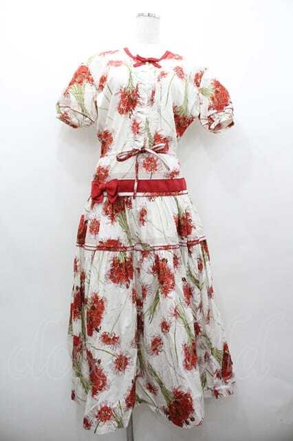 KANEKO ISAO / 彼岸花半袖ワンピース アイボリー I-26-01-15-062-EL-OP-SA-ZI