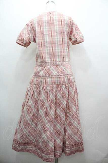 WONDERFUL WORLD / はしごリボンチェック半袖ワンピース ピンクチェック I-26-01-15-075-LO-OP-SA-ZI [2100060000037210-I-26-01-15-075-LO-OP-SA-ZI]