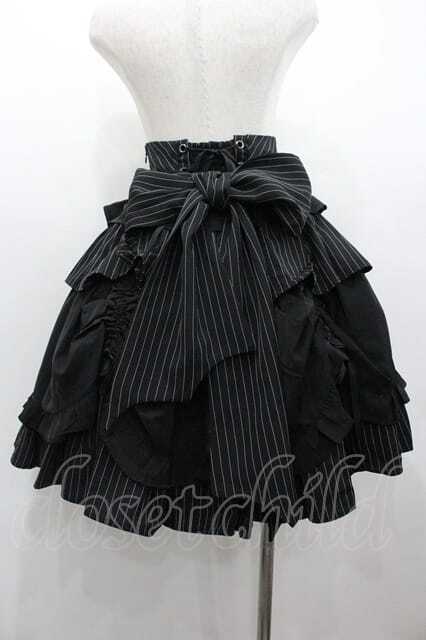 Chalmiere / ストライプフリルスカート M ブラック I-26-01-15-085-0-SK-SA-ZI