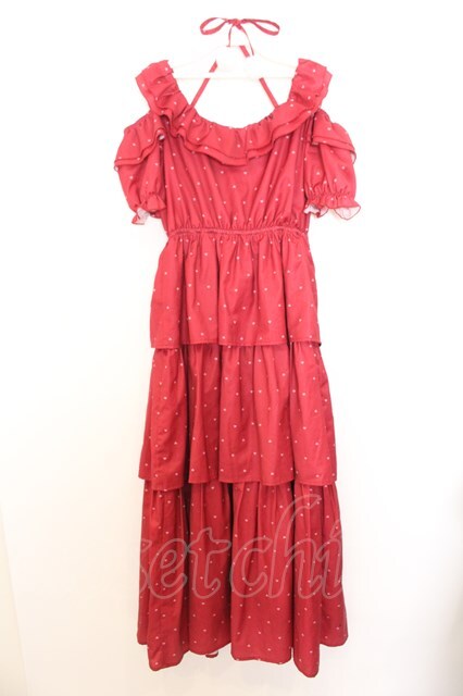 Ank Rouge / ハートdotオフショルロングワンピース M アカ O-26-01-16-007-CA-OP-OW-OS