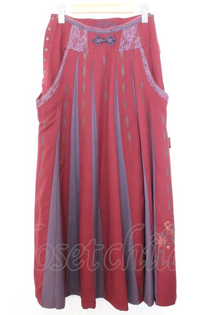 Ozz oneste / 矢絣プリント紅葉刺繍袴スカート ワイン×パープル O-26-01-16-028-OO-SK-IG-OS [2100080000072111-O-26-01-16-028-OO-SK-IG-OS]