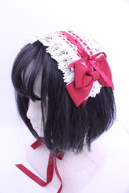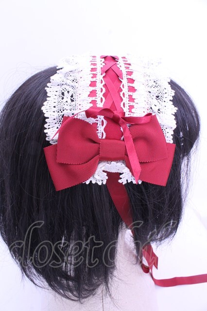 BABY,THE STARS SHINE BRIGHT / はしごレースのスピンドールヘッドドレス えんじ×オフシロ O-26-01-15-1004-BA-AC-IG-OS
