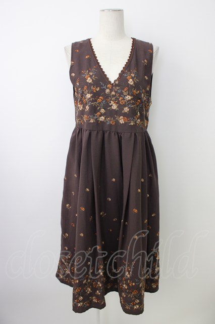 axes femme / 刺繍入りワンピース ブラウン T-26-01-18-012-AX-OP-SA-ZT