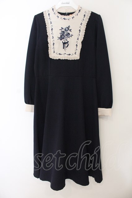 Fi.n.t / 絵画風ヨーク刺繍ワンピース F ネイビー O-26-01-17-074-CA-OP-OW-OS