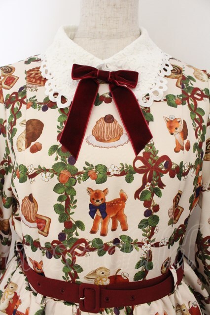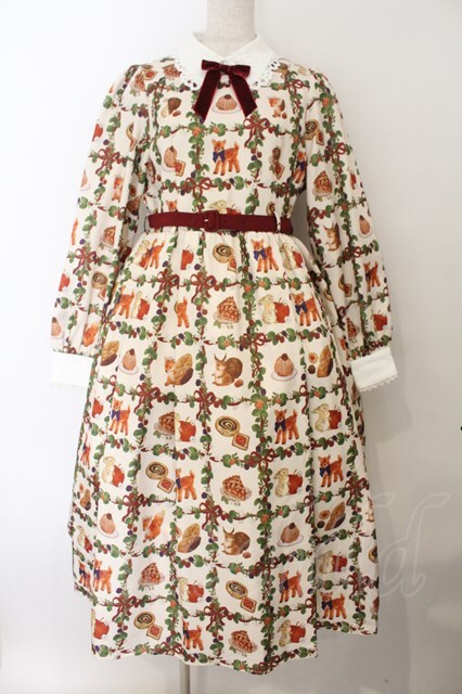 axes femme kawaii / 森のケーキ屋さん柄ワンピース 生成り O-26-01-17-005-AX-OP-IG-OS [2100080000072163-O-26-01-17-005-AX-OP-IG-OS]