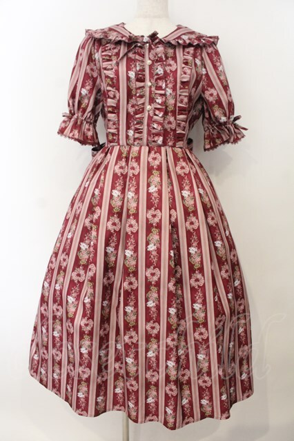 axes femme kawaii / RosyBear柄ワンピース ワイン O-26-01-17-018-AX-OP-IG-OS [2100080000071894-O-26-01-17-018-AX-OP-IG-OS]