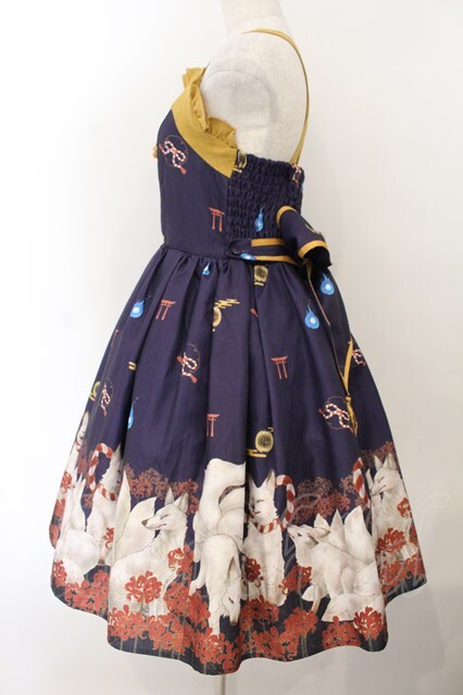axes femme kawaii / 彼岸の白狐会柄ジャンスカ M パープル O-26-01-17-008-AX-OP-OW-OS