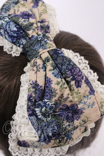 metamorphose / ゴブランプリントレース付きリボンヘッドドレス ブルー H-26-01-21-1017-ME-AC-NS-ZH [2100030000083968-H-26-01-21-1017-ME-AC-NS-ZH]