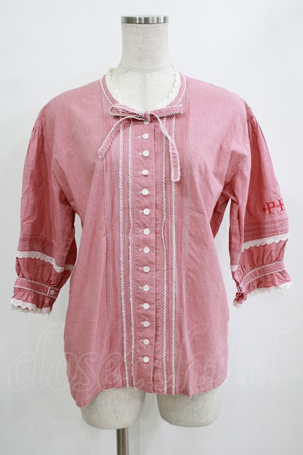 PINK HOUSE / ギンガムチェックブラウス Free レッド H-26-01-22-1033-LO-BL-NS-ZH