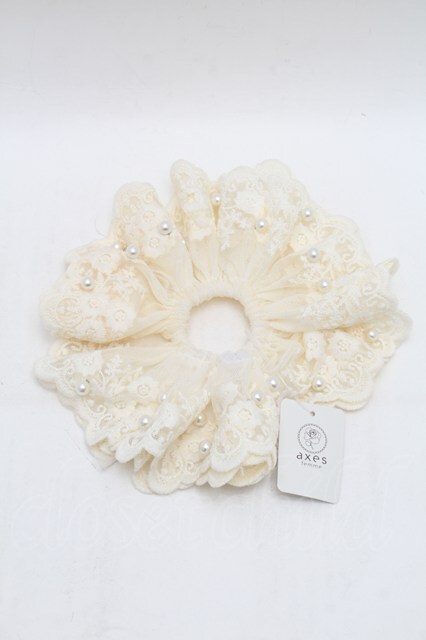 axes femme / パール付きレースシュシュ キナリ S-26-01-16-017-AX-AC-HR-ZS