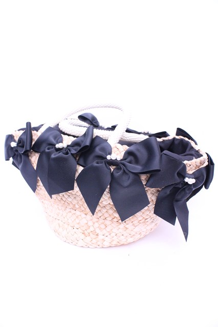 axes femme / リボン使いカゴバッグ ナチュラル×ブラック O-26-01-16-1066-AX-BG-OW-OS