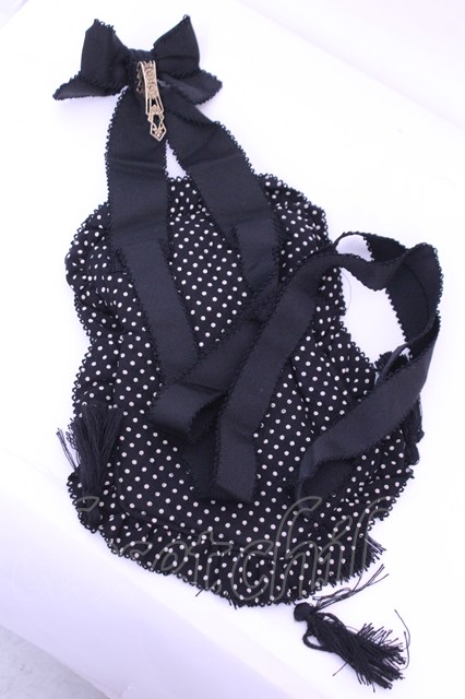 KANEKO ISAO / ピコフリルレース切り替え瓢箪ポシェット クロ×ドット O-26-01-16-1059-EL-BG-IG-OS