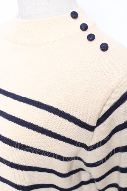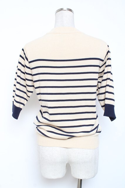 F i.n.t / ヴィンテージボーダー5分袖ニットプルオーバー F ベージュ×ネイビー Y-26-01-20-005-CA-TO-SZ-ZY
