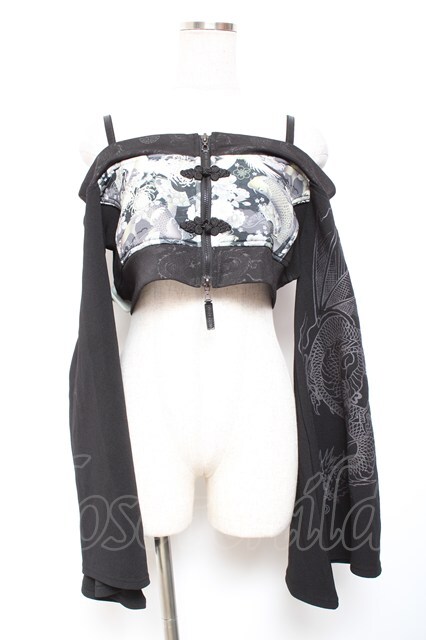 Qutie Frash / 和柄オフショルショートボレロ 黒 Y-26-01-20-014-QU-TO-SZ-ZY [2100070000048916-Y-26-01-20-014-QU-TO-SZ-ZY]