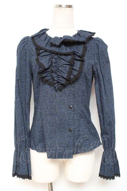 Moi-meme-Moitie / 小花柄アシンメトリーフリルブラウス 2 ブルー Y-26-01-20-038-MO-BL-SZ-ZY