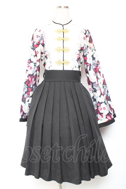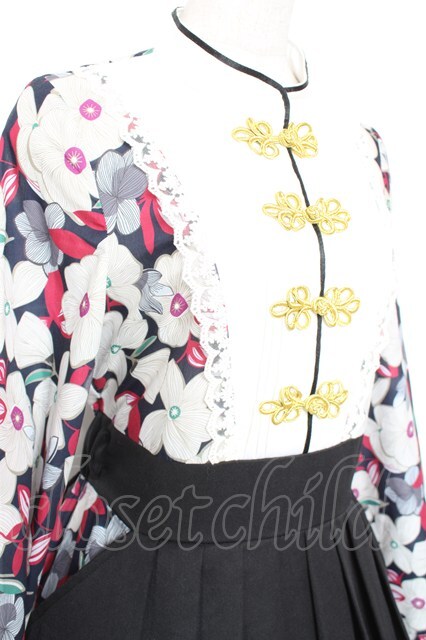 Favorite / チャイナブラウス×袴の和中華折衷袴スカートドッキングワンピース 黒 Y-26-01-20-067-LO-OP-SZ-ZY [2100070000041718-Y-26-01-20-067-LO-OP-SZ-ZY]