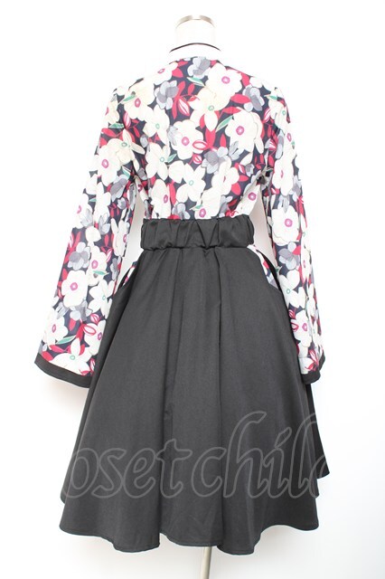 Favorite / チャイナブラウス×袴の和中華折衷袴スカートドッキングワンピース 黒 Y-26-01-20-067-LO-OP-SZ-ZY