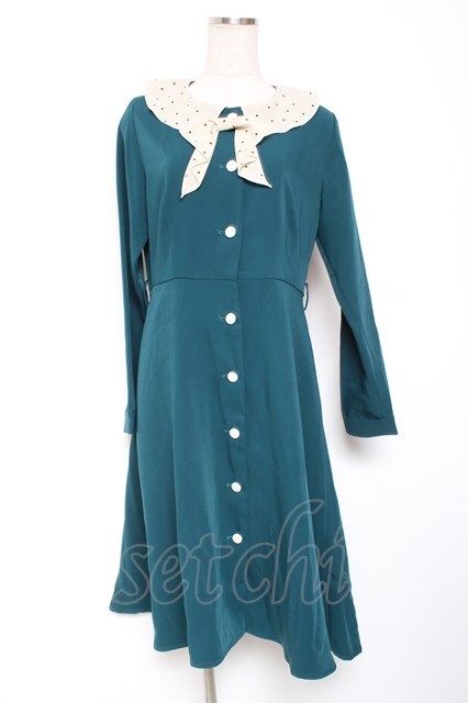 Fi.n.t / タイ付きドットクレリック衿ワンピース グリーン Y-26-01-20-068-CA-OP-SZ-ZY [2100070000048879-Y-26-01-20-068-CA-OP-SZ-ZY]