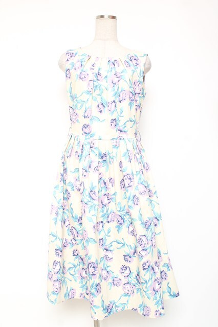 an another angelus / フラワープリントマルバックルベルトノースリーブワンピース 生成り Y-26-01-20-071-CA-OP-SZ-ZY