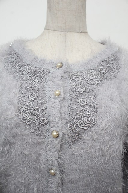 axes femme / ローズレースシャギーカーディガン グレー S-26-01-17-015-AX-TO-HR-ZS